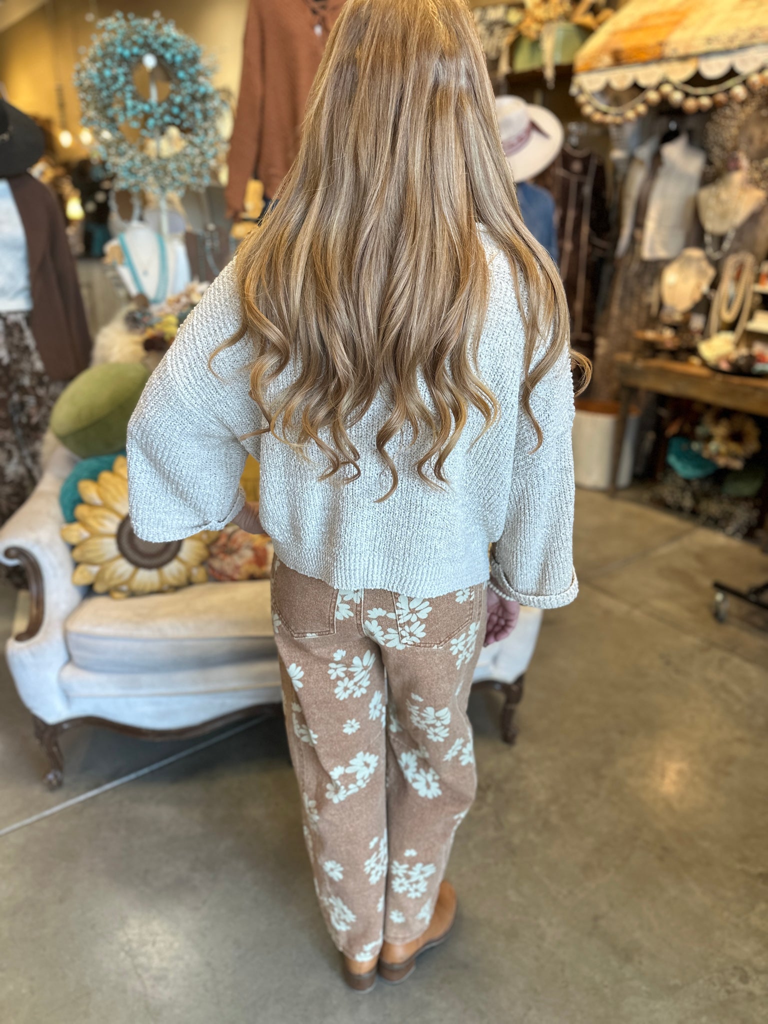 Step into fall fun with these Camel Daisy wide-leg pants! The playful daisy print adds a cheerful touch, while the knee seam detail gives them a little extra flair. With back patch pockets for style and function, these pants are perfect for breezy autumn days. Comfortable, cute, and ready to brighten your wardrobe.