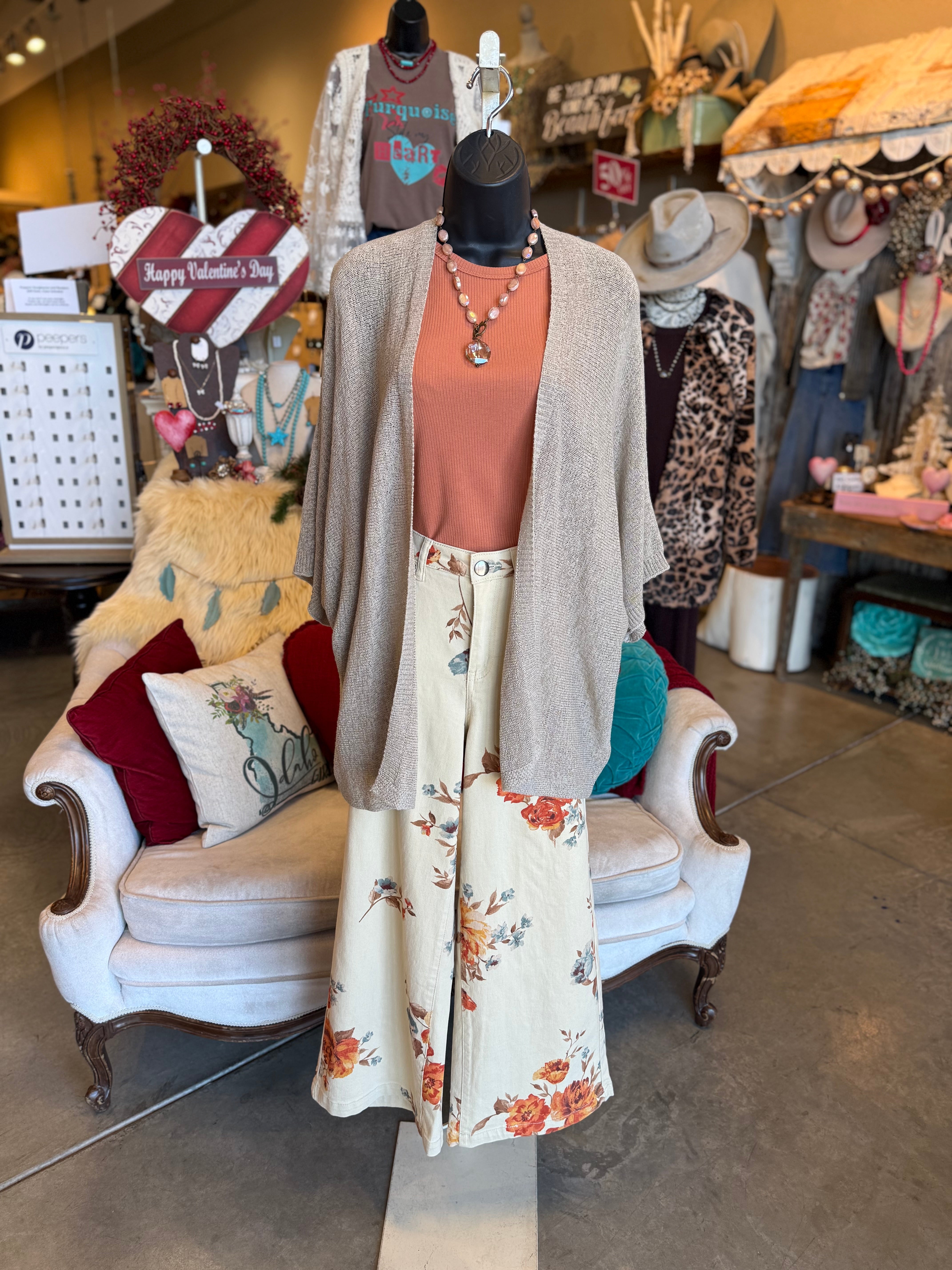 Elevate your seasonal wardrobe with these khaki twill pants, featuring a delicate washed floral print that transitions seamlessly from casual to polished. The high-waist, wide-leg silhouette flatters while the comfort stretch fabric moves with you throughout the day. Versatile enough to pair with sneakers or heels, these pants are an essential Spring staple that works as hard as you do.