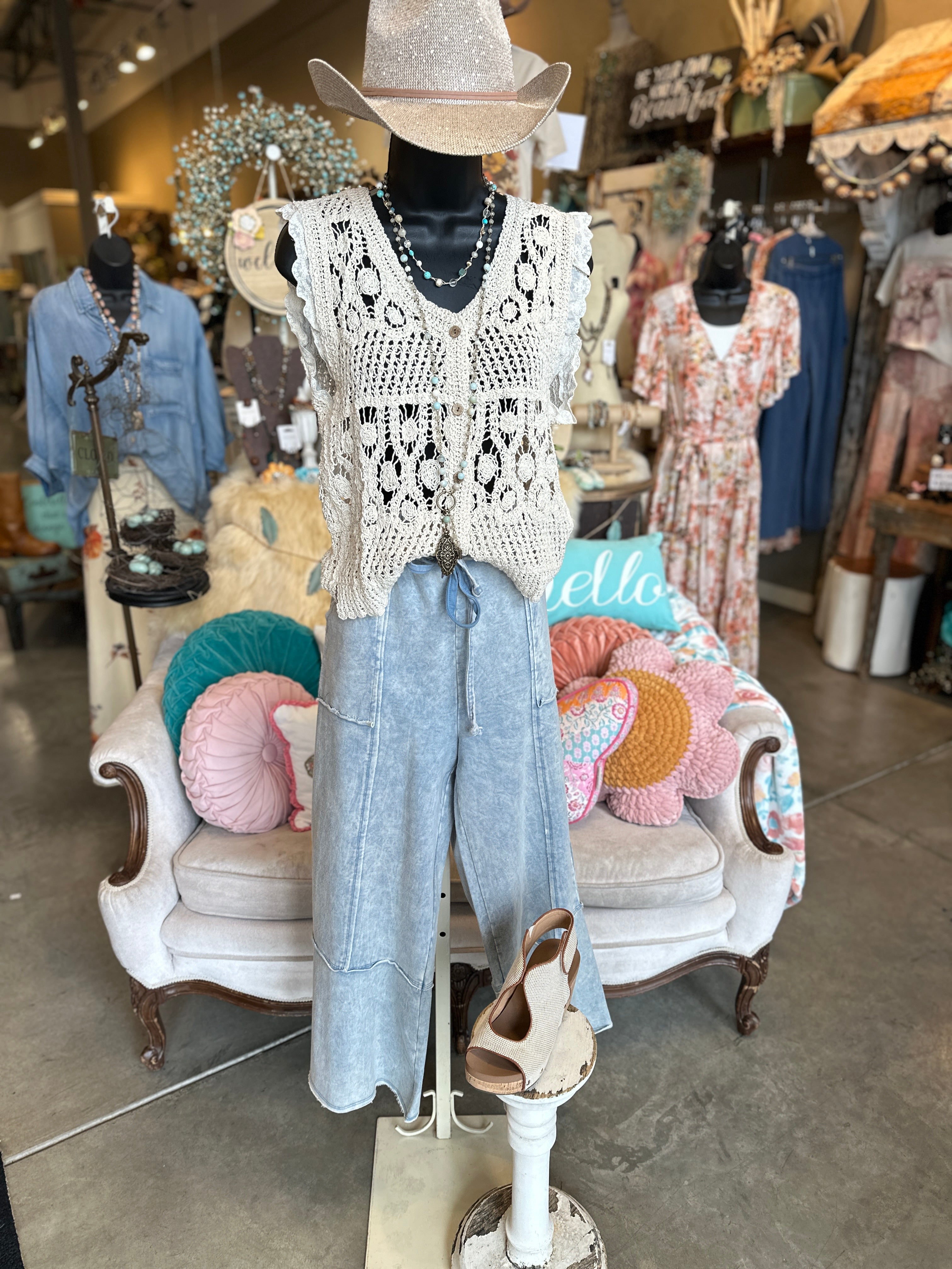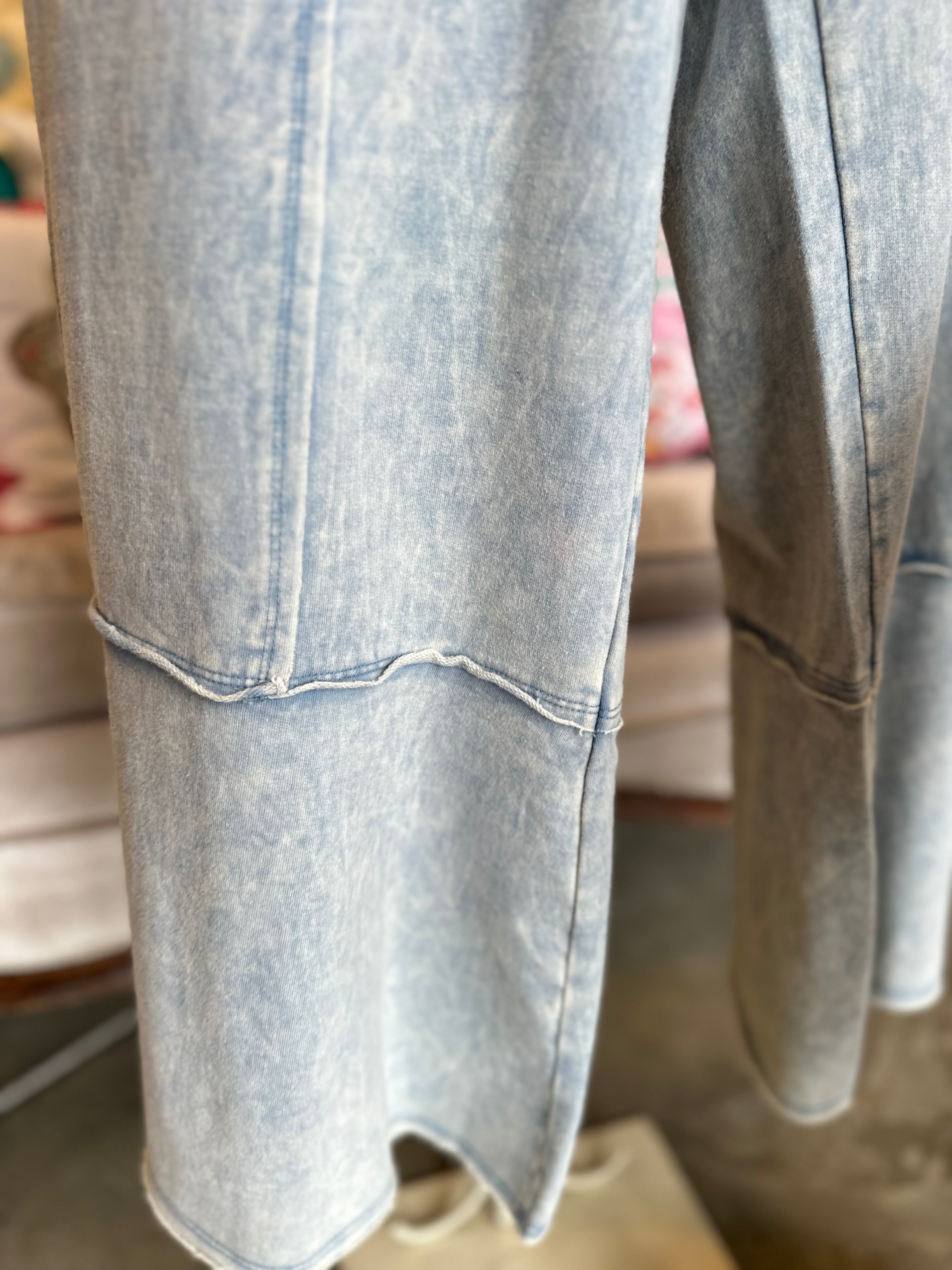 Effortless comfort meets laid-back style with these washed denim terry knit pants. Crafted from 100% cotton, they feature a soft, breathable terry knit fabric perfect for all-day wear. The oversized pockets add both functionality and a playful touch, while the relaxed fit delivers that coveted casual vibe. Whether you're running errands or lounging at home, these pants are your go-to for looking put-together without sacrificing comfort.