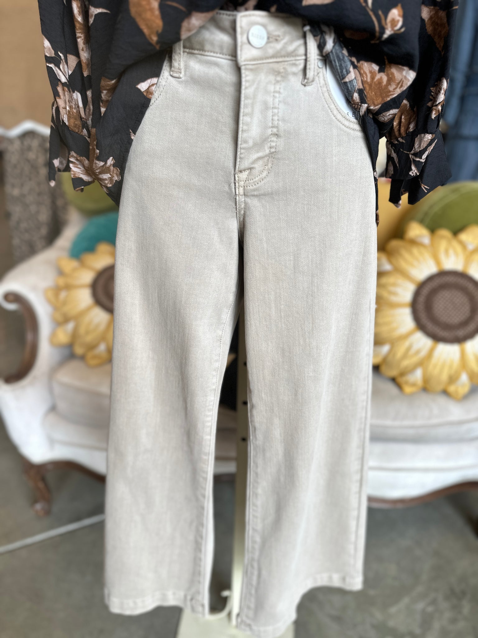Step into comfort and style with our Risen Taupe Denim. These wide-leg cropped jeans feature a mid-rise waist and a cozy stretch fabric that moves with you. The unique adjustable waistband lets you switch up your look effortlessly—perfect for mixing casual vibes with a bit of flair. Whether you're dressing up or keeping it chill, these jeans bring a playful twist to your everyday wardrobe.
