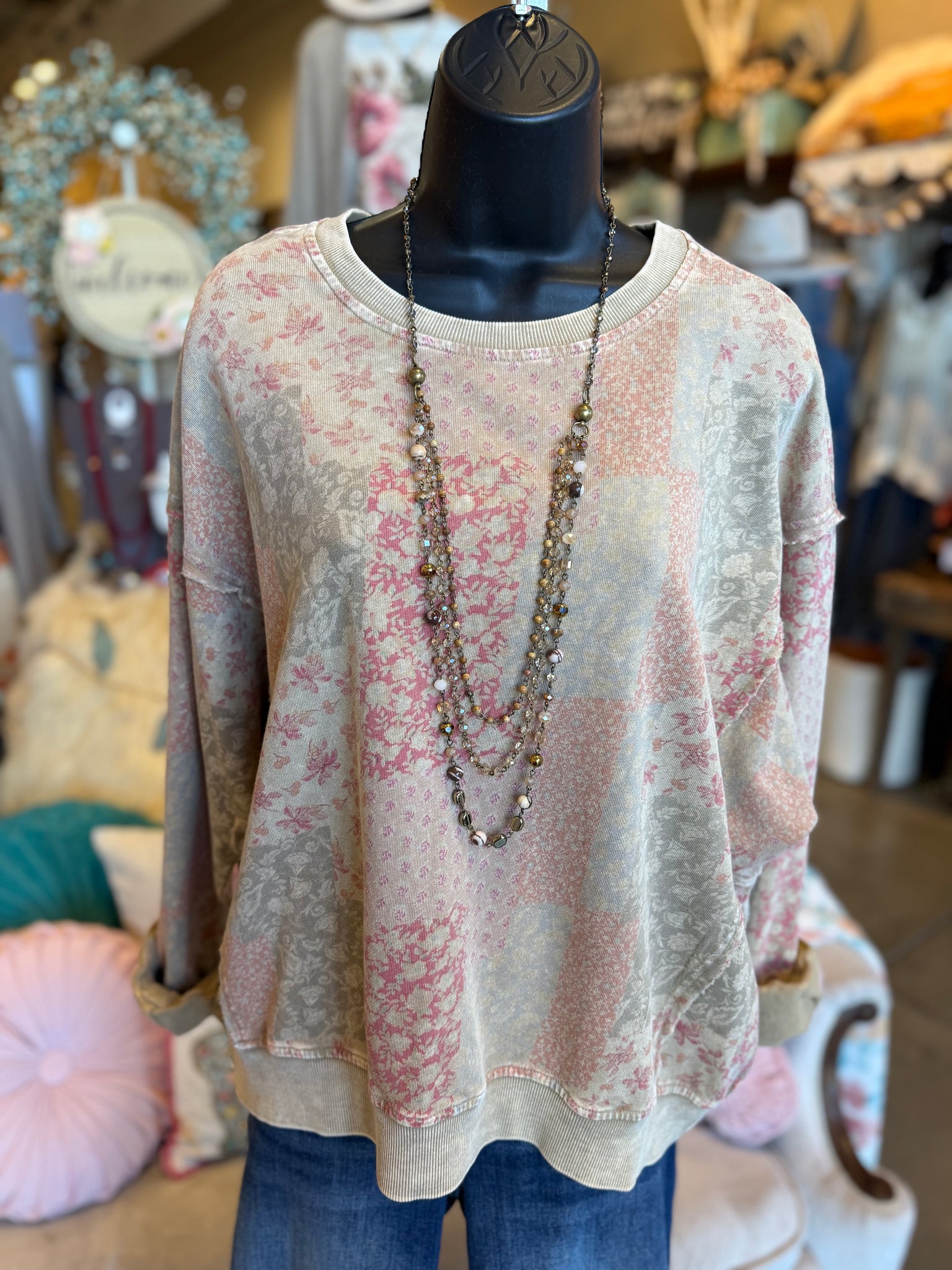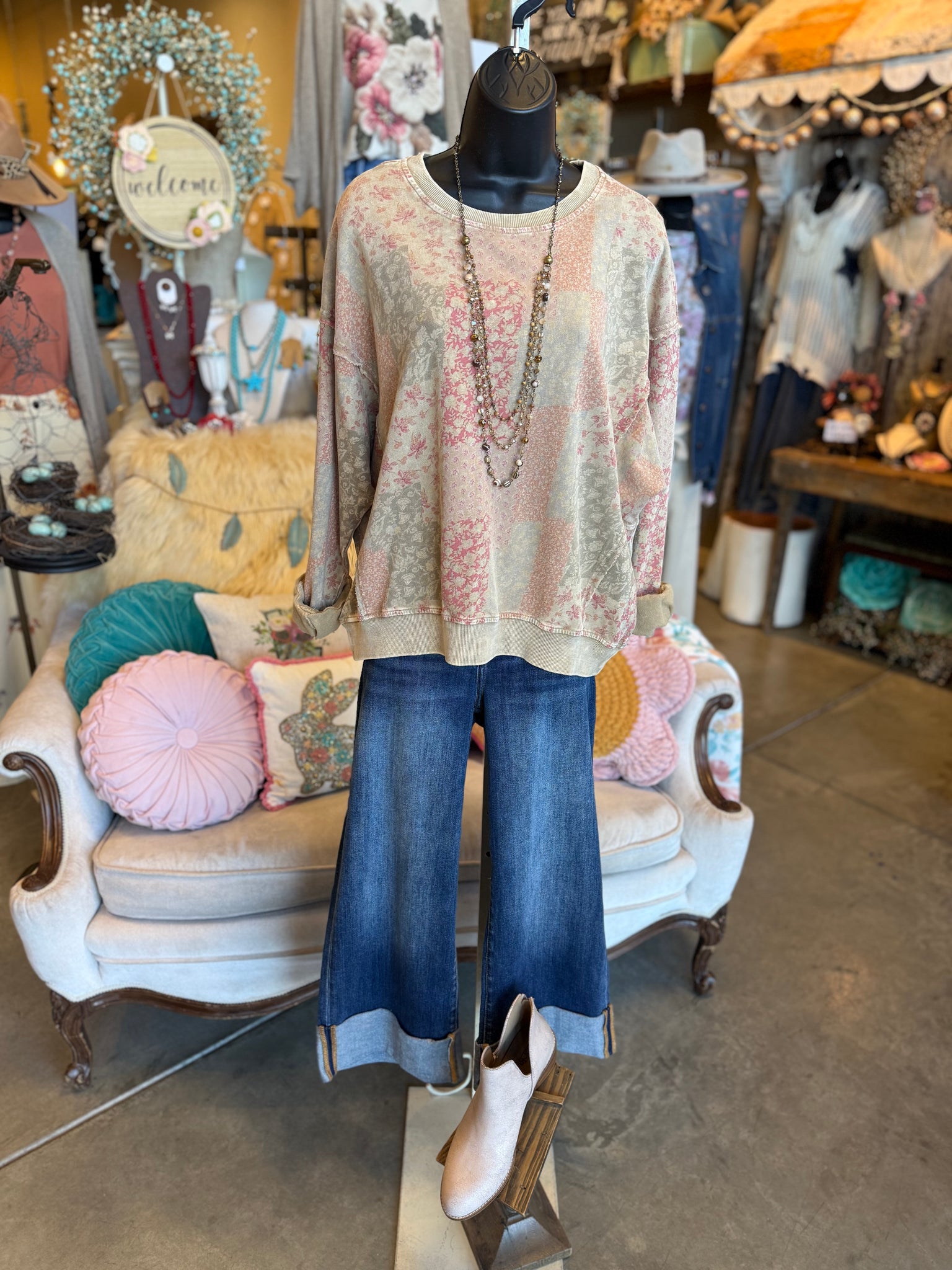Effortless style meets cozy comfort in this khaki patchwork terry knit top by Easel. Featuring a charming floral print patchwork design with mineral-washed detailing, this piece offers a relaxed, loose fit perfect for everyday wear. The soft terry knit fabric provides gentle comfort without sacrificing style, making it an ideal layering piece or standalone staple for your wardrobe.
