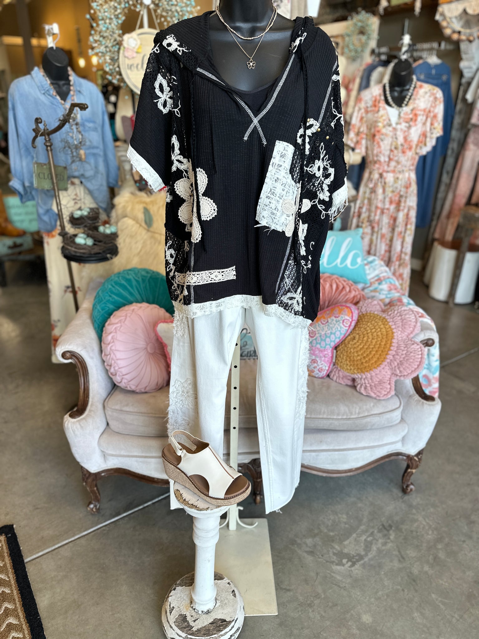 Embrace effortless spring style with these slouchy barrel pants featuring whimsical floral patch details. Crafted in a soft cream tone, they deliver that coveted relaxed silhouette with personality to spare. The playful patches add an artistic touch that sets them apart from everyday basics. Ideal for those who crave comfort without compromising on unique, eye-catching design.