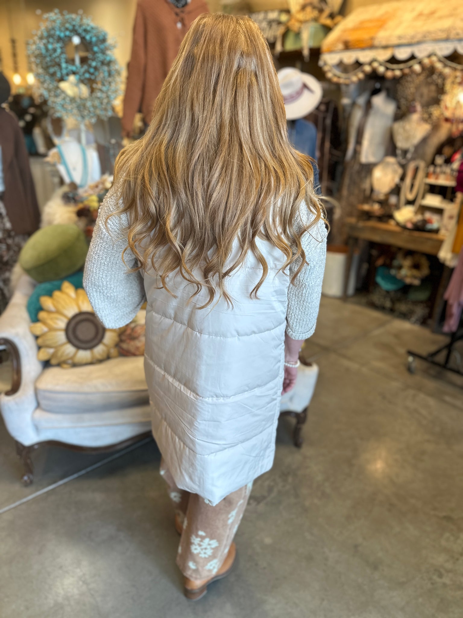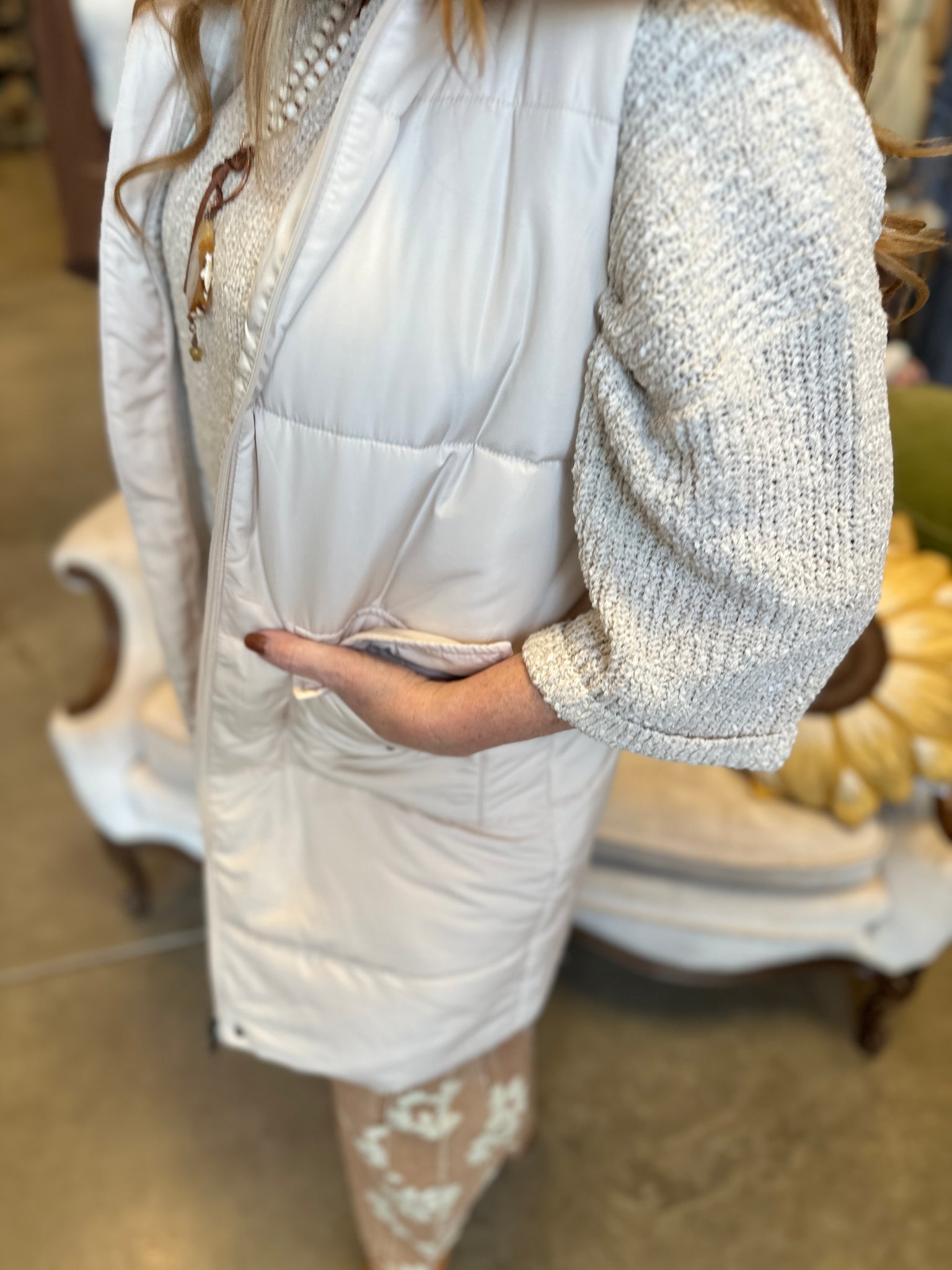 Long Puffer Vest in Black, Brown or Cream