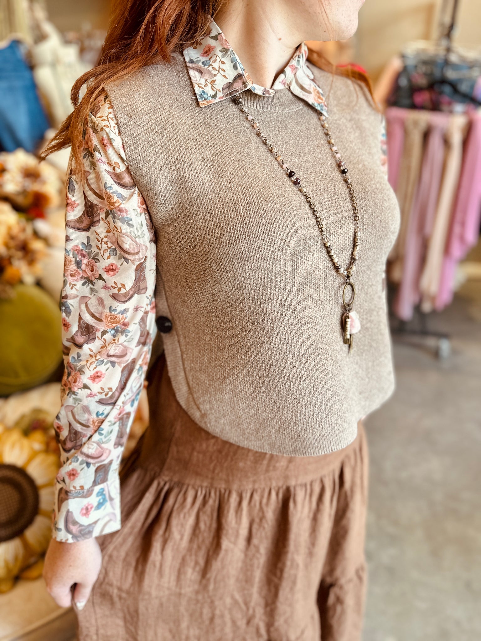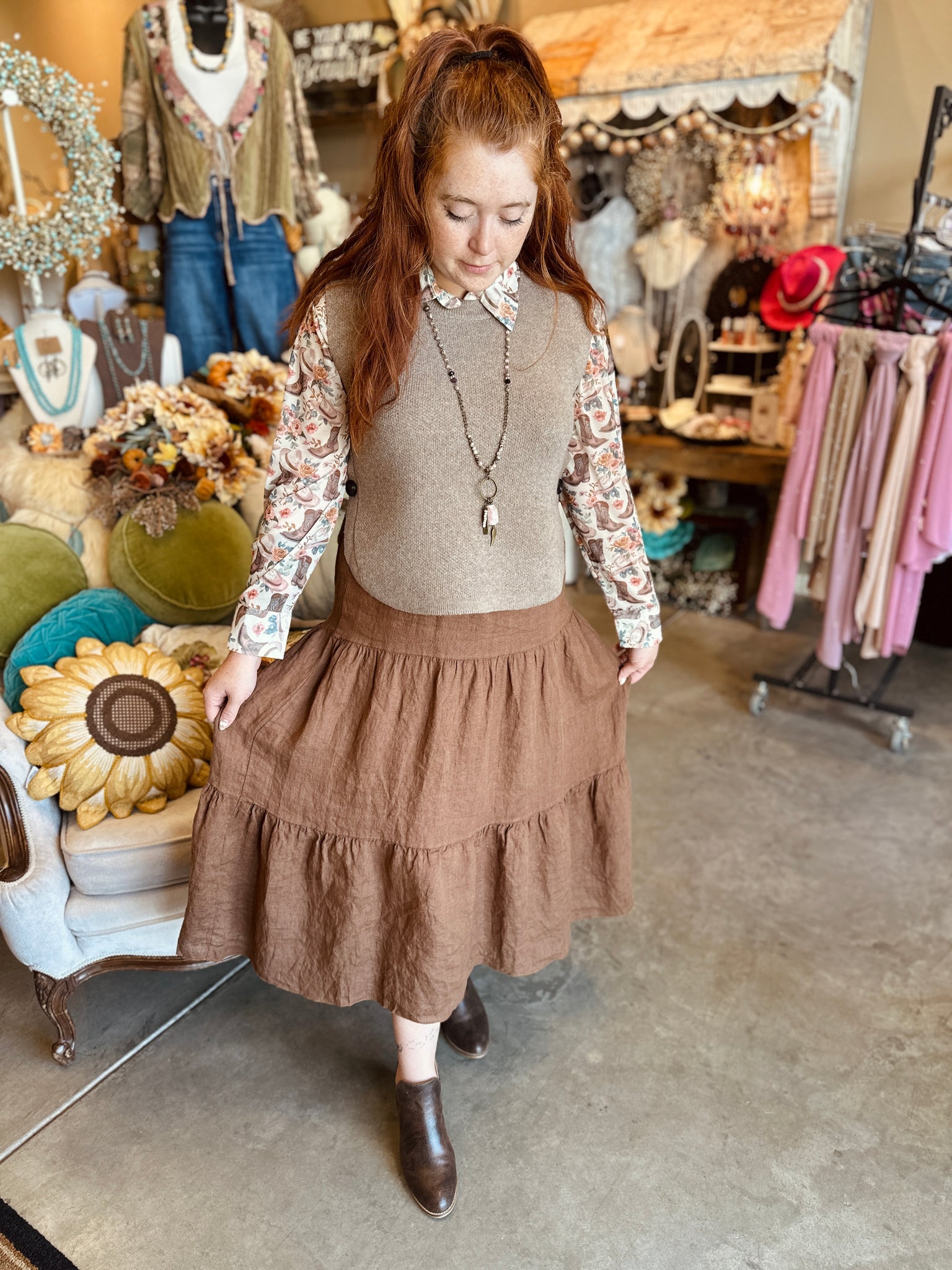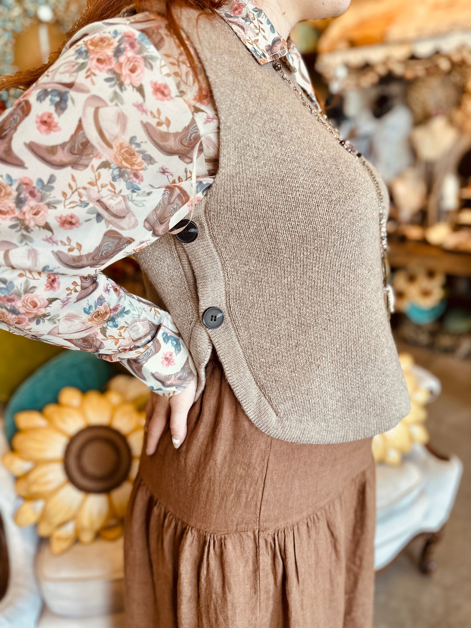 Elevate your wardrobe with this rich mocha mousse vest, featuring elegant side button details for a touch of sophistication. Versatile and stylish, it layers effortlessly over your favorite tops or stands out beautifully on its own. Perfect for adding warmth and texture to any outfit while keeping your look polished and distinct.