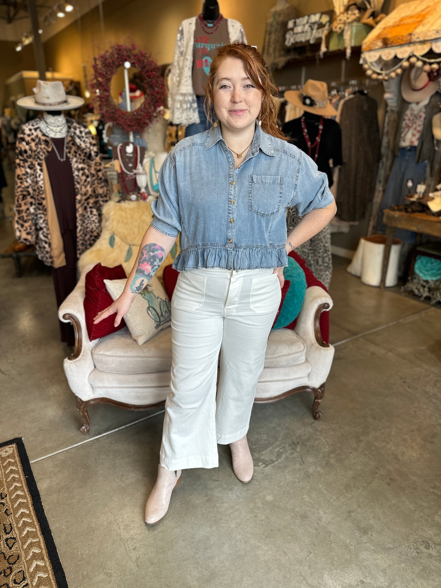Elevate your everyday wardrobe with this charming peplum-style top that brings instant personality to any outfit. Crafted from a luxurious blend of 65% cotton and 35% tencel, this button-down beauty offers breathable comfort with a silky-smooth drape. The ruffled hem adds a flirty, feminine touch that's perfect for dressing up or down. Whether you're heading to brunch or the office, this versatile piece delivers style without sacrificing comfort. A wardrobe essential that works as hard as you do.