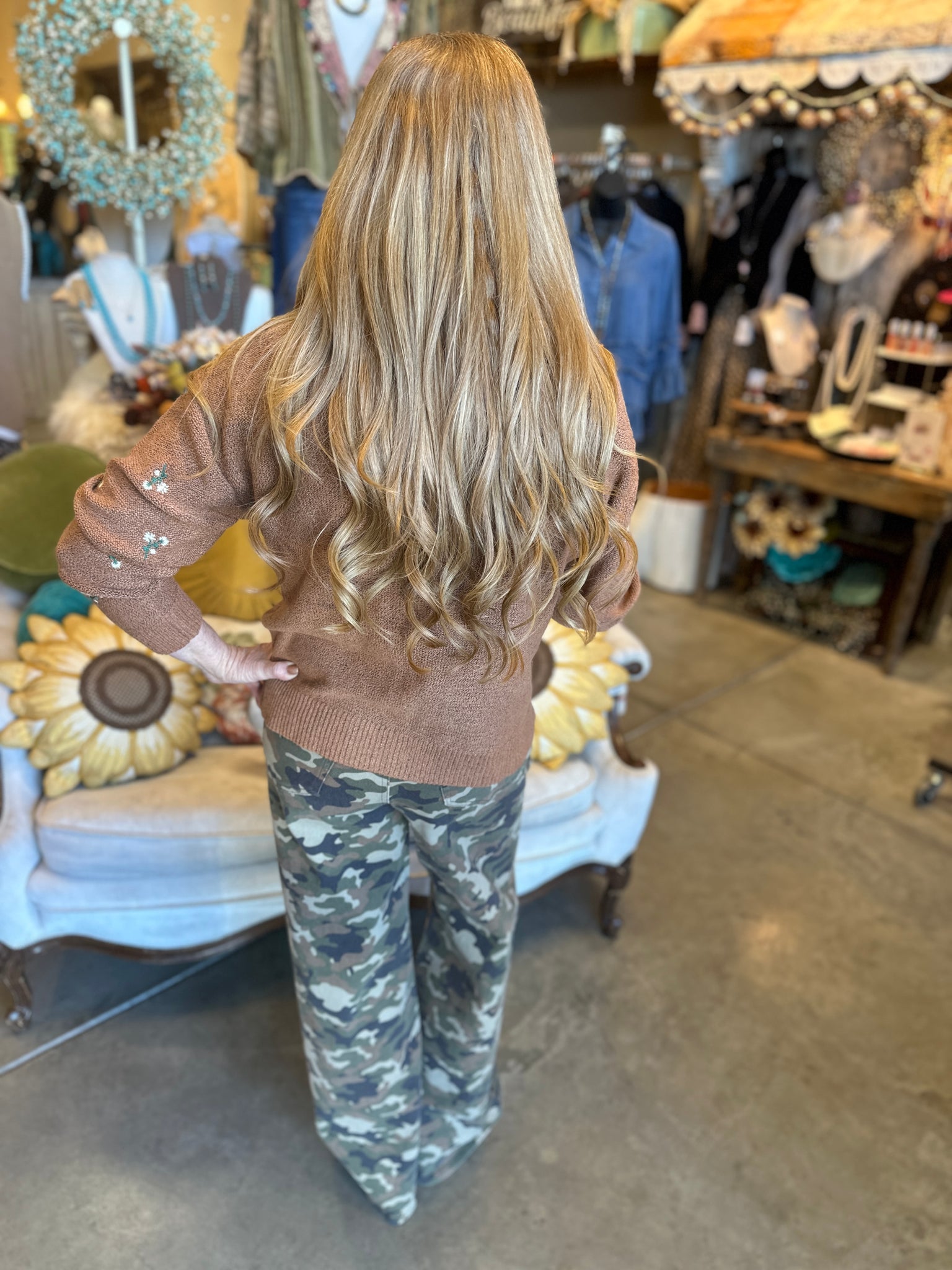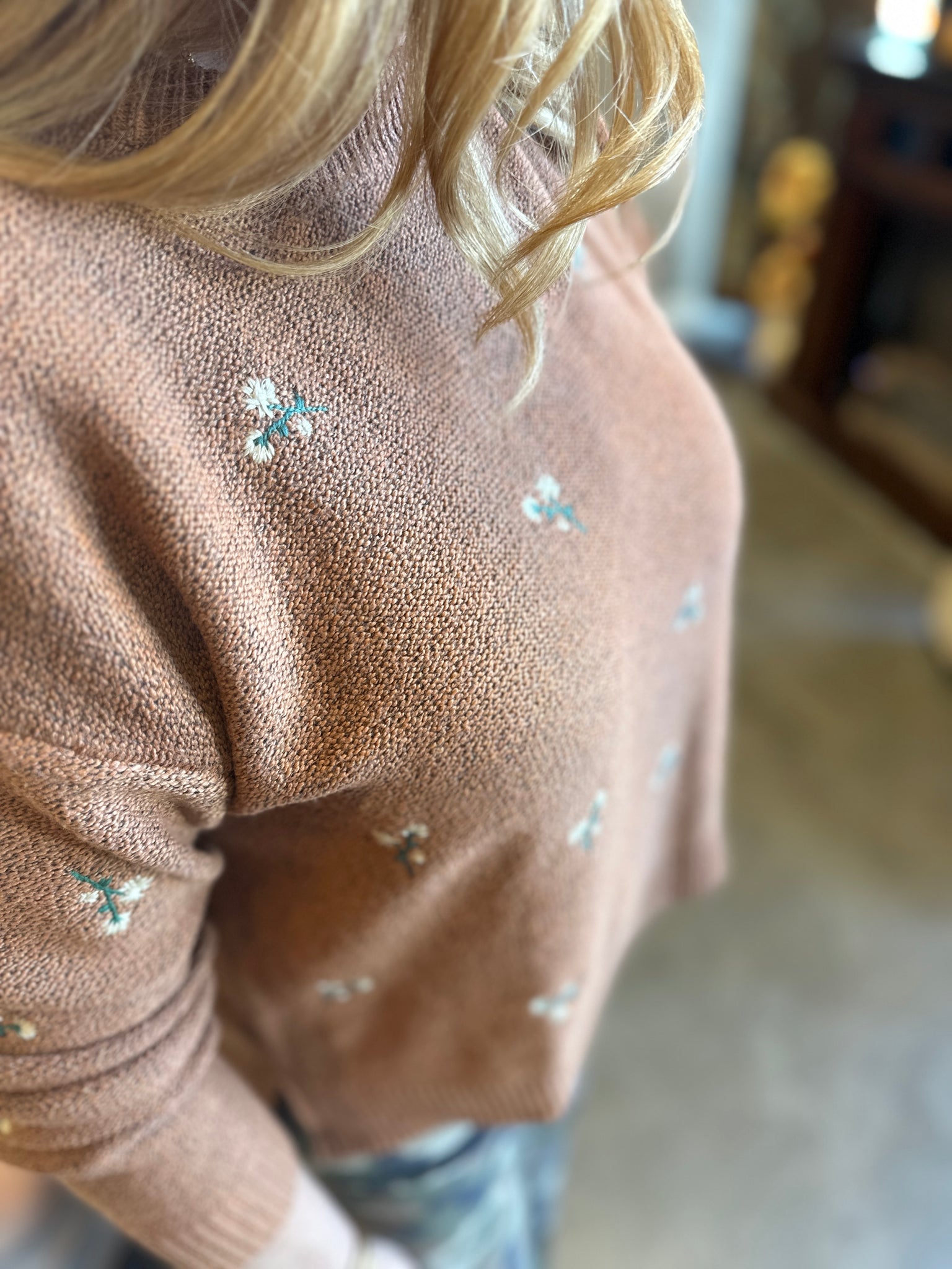 Embrace the cozy charm of autumn with this Rust Floral Embroidery Sweater. The warm rust color paired with delicate floral embroidery creates a perfect Fall look that feels both cute and comfortable. Ideal for layering on crisp days, it effortlessly brings seasonal style and gentle warmth to your wardrobe.