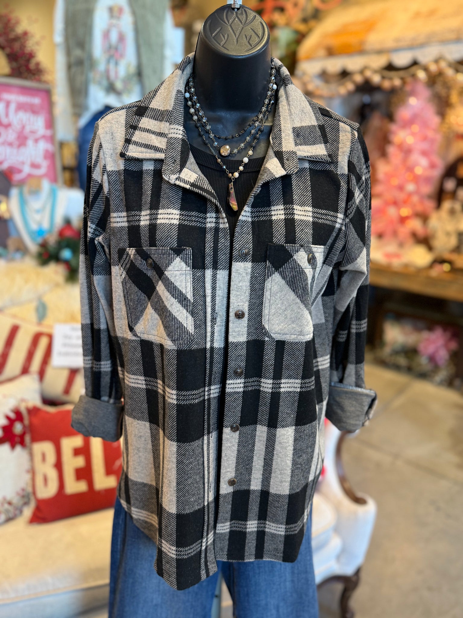 Wrap yourself in comfort with this Black and Tan Plaid Flannel, designed to feel as good as it looks. The super soft fabric drapes beautifully in a loose fit that moves with you, making it perfect for layering or wearing solo. Classic plaid styling in rich black and warm tan tones works with virtually any wardrobe. Whether you're relaxing at home or heading out for the day, this flannel delivers effortless style and all-day comfort.