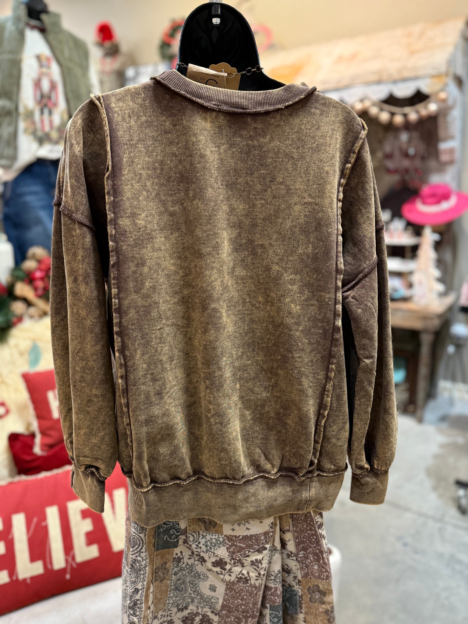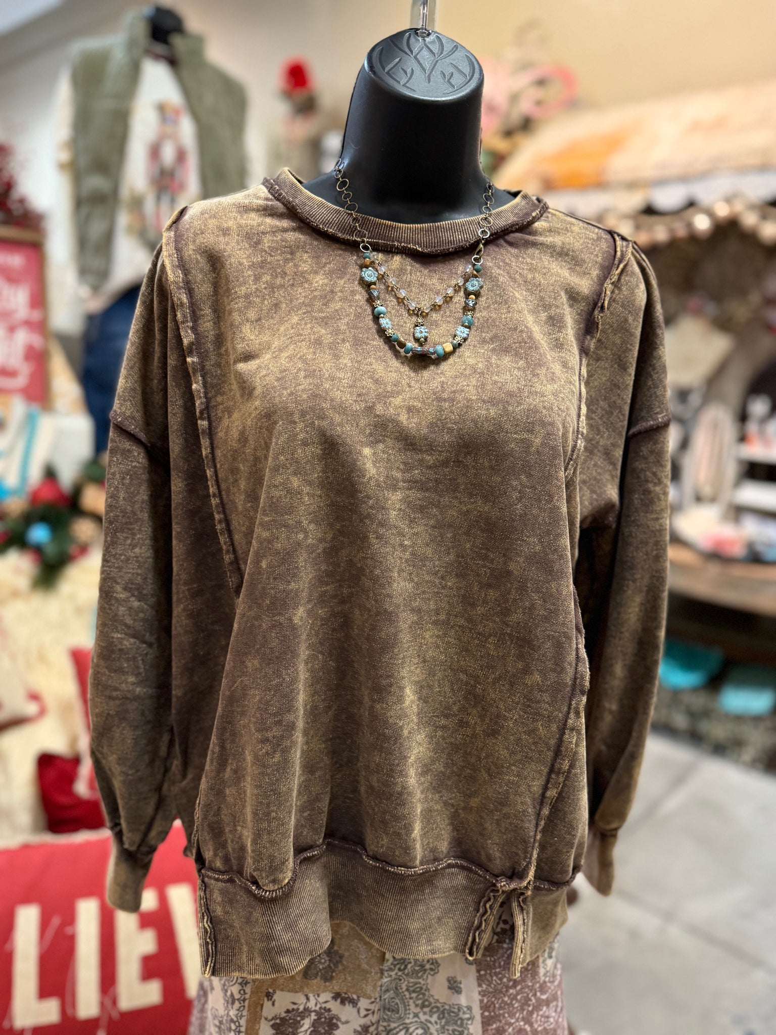 Slip into effortless style with our Mahogany Terry Knit Top—a cozy essential that brings vintage vibes straight to your modern wardrobe. The mineral-washed finish gives it that perfectly lived-in, retro charm, while the soft terry knit fabric keeps you comfortable all day long. Whether you're lounging at home or running errands around town, this rich mahogany hue pairs with everything and feels as good as it looks. Vintage soul, contemporary comfort—what's not to love?