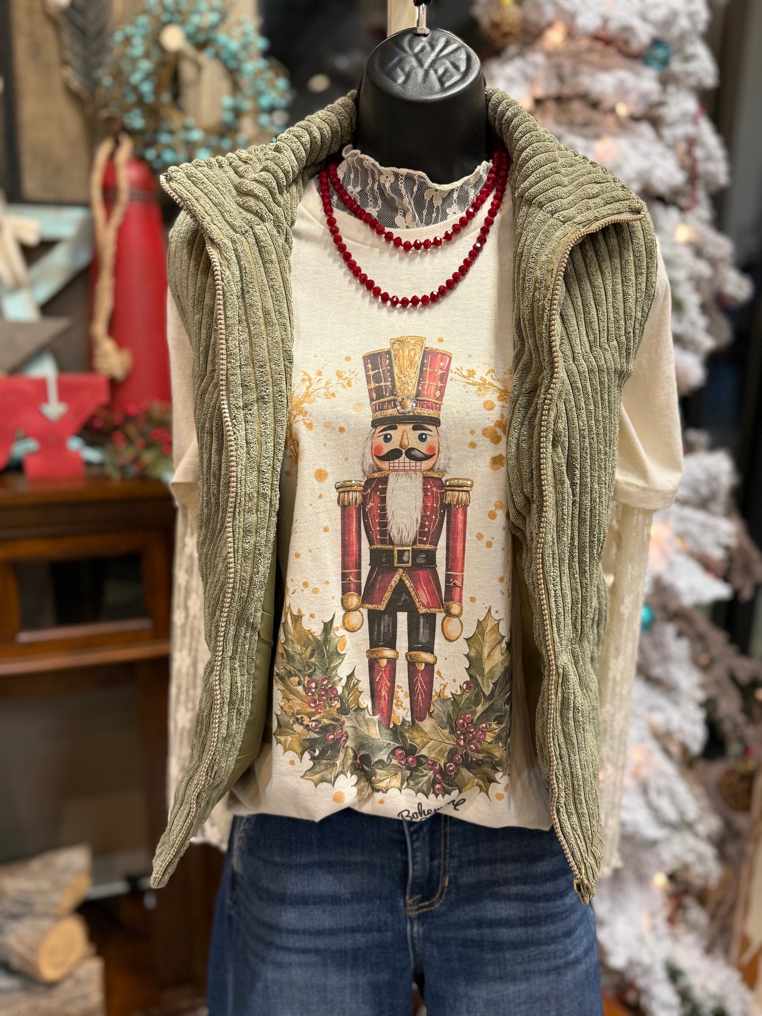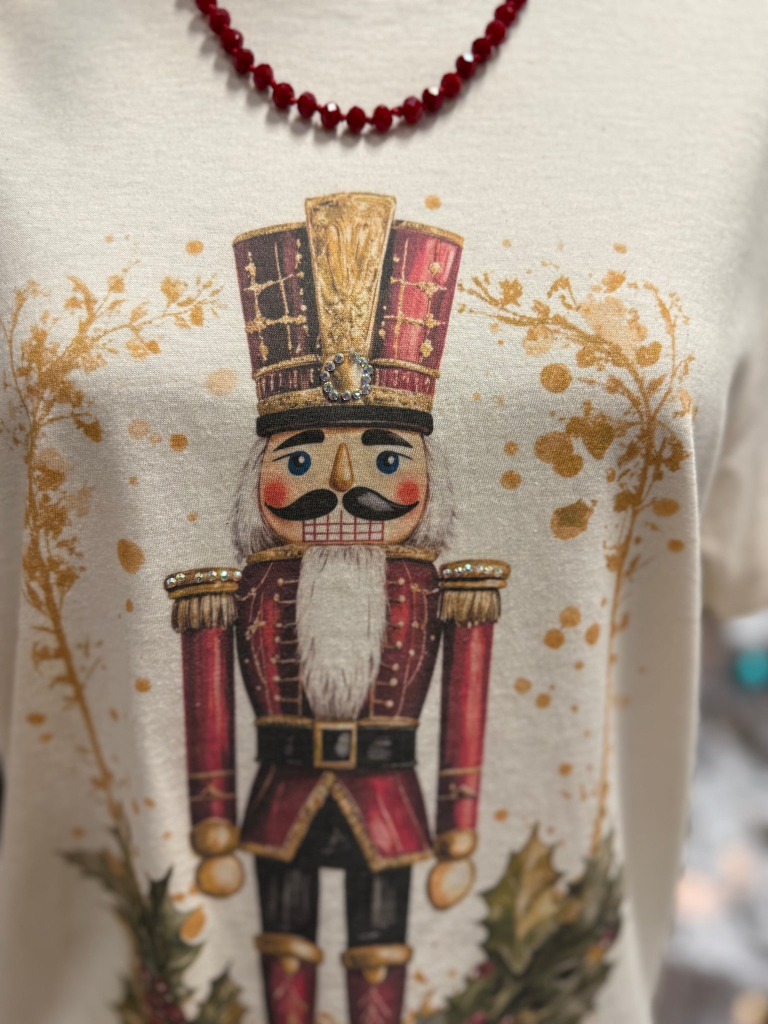 Celebrate the season in style with this charming Nutcracker Graphic Tee! Featuring a classic nutcracker design on soft white cotton, this tee brings festive cheer to your everyday wardrobe. The traditional illustration gets a sparkly upgrade with eye-catching embellishments that add just the right amount of shimmer and personality. Perfect for holiday gatherings, casual outings, or cozy nights in—it's a playful way to spread seasonal joy without trying too hard.