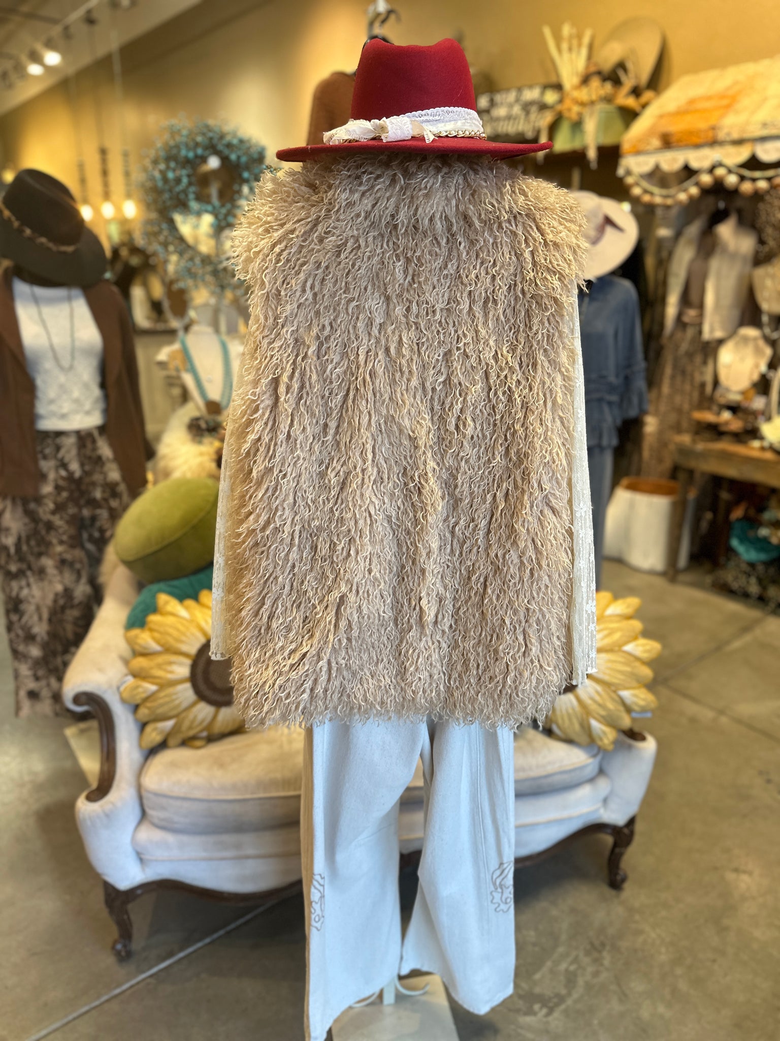 Wrap yourself in boho bliss with this luxe faux fur vest! Featuring long, curly strands in a warm tan hue, it's the perfect layering piece to elevate any outfit with effortless style. Throw it over your favorite dress or tee for instant cozy-chic vibes. Soft, statement-making, and totally Instagram-worthy—this vest is your new go-to for adding that free-spirited flair to your wardrobe.