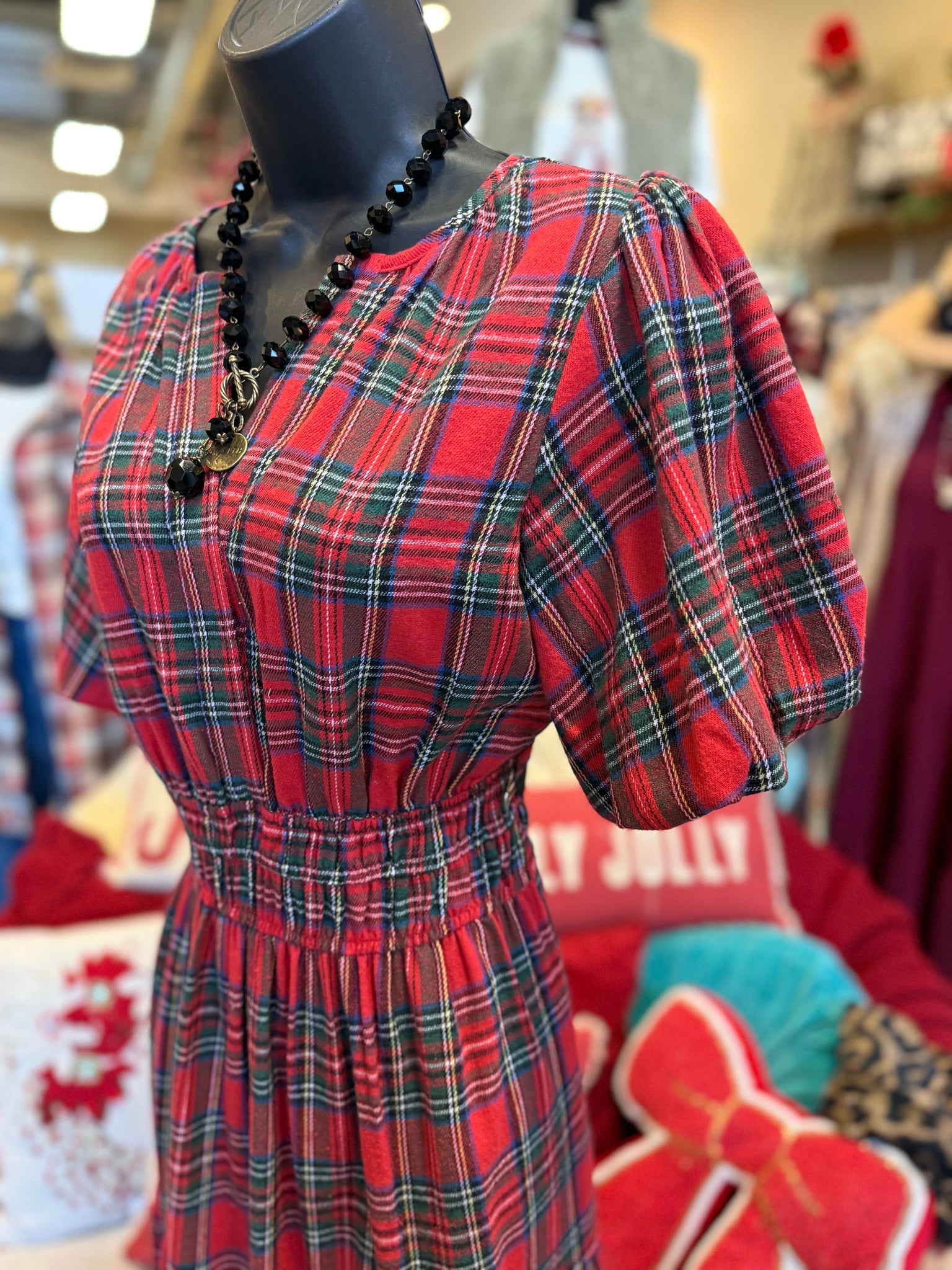 Twirl into the season in this cheerful tartan plaid midi dress! Featuring a flattering smocked waist, playful puff sleeves, and functional pockets—because style shouldn't sacrifice practicality. The classic plaid pattern brings instant festive charm to your wardrobe, perfect for holiday gatherings, casual outings, or whenever you want to add a pop of personality to your day. A versatile piece that celebrates fun fashion with timeless appeal.